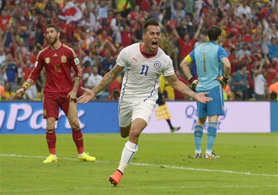 Tags: Arturo Vidal Brazil world cup Charles Aranguiz Chile Chile beat Spain Del Bosque Koke Fernando Torres football Football world cup Santi Cazorla Spain world cup 2014 news World Cup 2014. FIFA World Cup 2014 Xabi Alonso