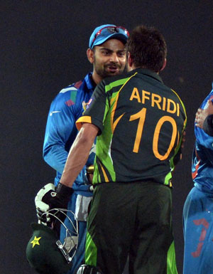Ashwin made the breakthrough by taking the wicket of Sharjeel Khan, Pakistan batting began to fall apart. Amit Mishra bowled an absolute brilliant spell of consecutive 8 overs picking up 2 wickets giving away only 16 runs. However Mohammad Hafeez, who got the man-of-the-match award, kept hopes alive for the Pakistanis. Shoaib Maqsood gave him good support at the other end. Together they put up a partnership of 87 crucial runs for the 5th wicket. Just when it looked like that Pakistan was taking away the match from India’s grip, India struck back with quick wickets. But if one has to find out the star of the match, it can be none other than Shahid Afridi. It was Afridi’s sixes that gave Pakistan the win when they needed 8 runs off the last 4 balls. Afridi remained not out on 34 off just 18 balls. India’s bowlers’ valiant effort in the end went in to vain due to the heroics from Afridi.