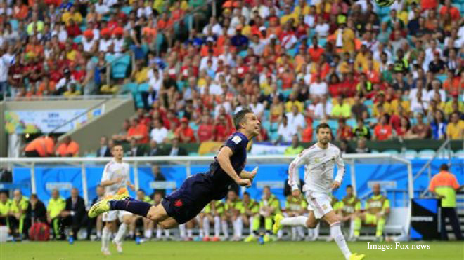 The match, however, didn’t start the way it finished. Spain were unquestionably the dominant side enjoying lion share of the possession as they their tiki-taka style of football going in full flow. They got the lead through a penalty in the 27th minute after Diego Costa was brought down by one of the Dutch defenders. Xabi Alonso scored from the spot as Spain slowly began to take cruise control of the match. But one moment of magic and it changed the whole scenario. 44 minutes on the clock. One of the Dutch midfielders floated one of the numerous wayward crosses that had no precision behind it. But Robin Van Persie had other ideas. Van Persie threw his body at it and met the ball almost one and a half feet above the ground with his head. And the very next moment Netherlands was back on level terms, courtesy to one of the most beautiful goals in world cup history.