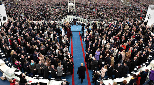 He thanked the citizens who helped him reach this platform, who “came by the tens of millions to become part of a historic movement,”alluding to the arrival of the first pilgrims to the New World aboard the Mayflower. The entirety of the speech laid emphasis on citizens, on the citizens of America. His inauguration was “not merely transferring power from one administration to another – but transferring it from Washington DC and giving it back to you the people.”To evoke the patriotic feelings on which his campaign was based, he acknowledged the need for the Government to be controlled by the people, since it was initially intended to be, as Abraham Lincoln said, of the people, for the people and by the people.
