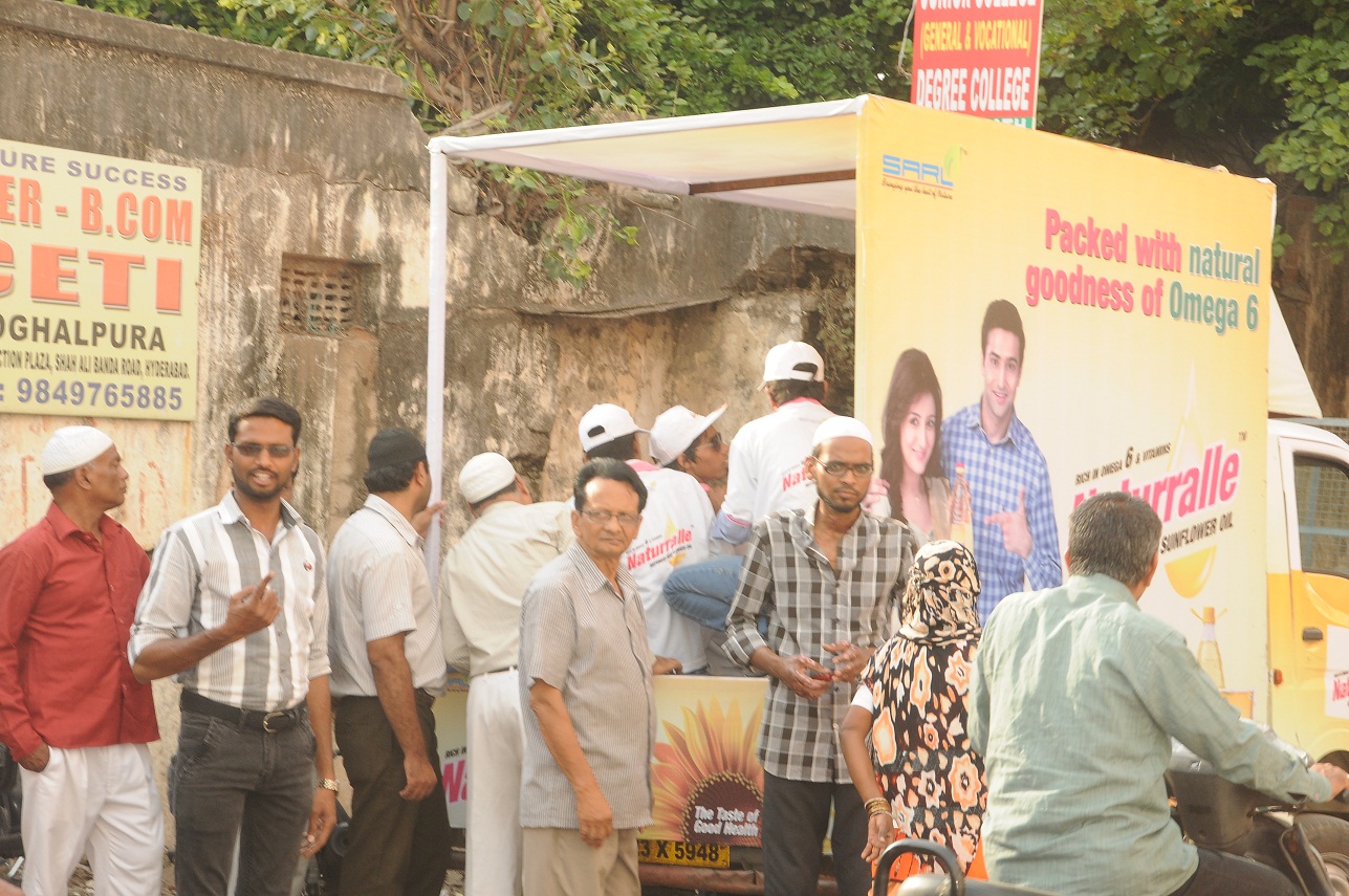 Hyderabad 24th July, 2014: Naturralle Refined Sunflower Oil started a special initiative “Ramadan Mubarak” to create fun and excitement around the festival season. The program has a specially designed van traveling to pre decided locations across Hyderabad to spread the message of love and brotherhood and Celebrate Ramadan – Naturralle.